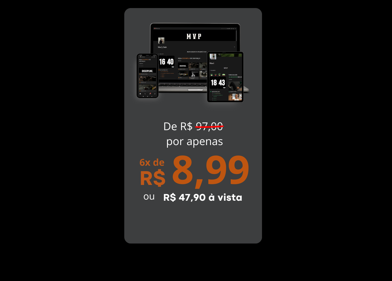 Customize o MVP como quiser, tire o máximo de cada treino com clareza, organização e eleve seus hábitos a outro nível.